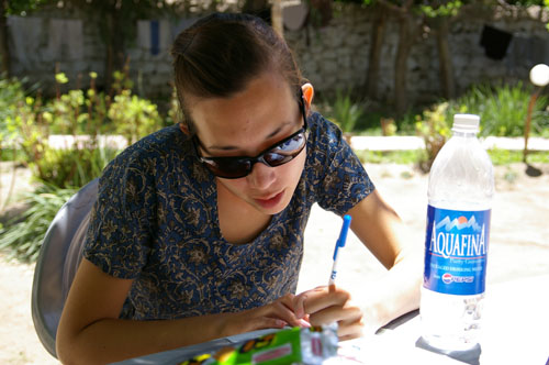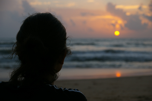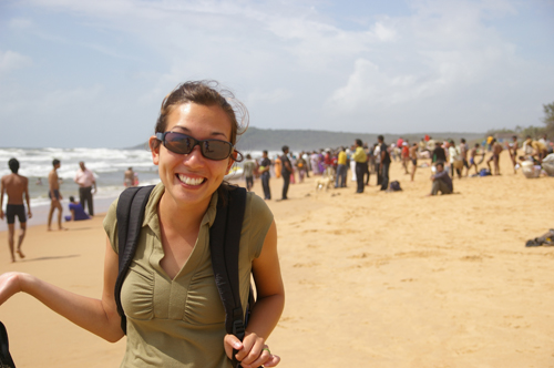 Writing at the beach, Calangute
