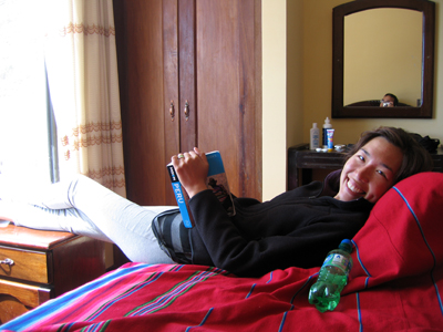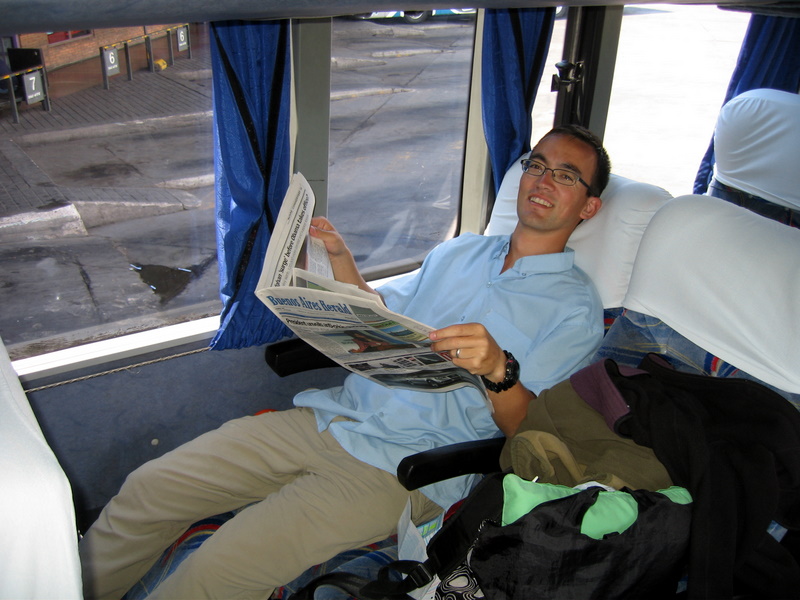 Matt reading on a long bus ride